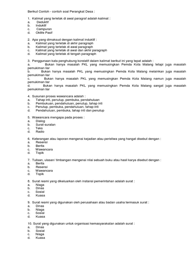 Contoh soal ujian perangkat desa | Microsoft office word, Office word, Words
