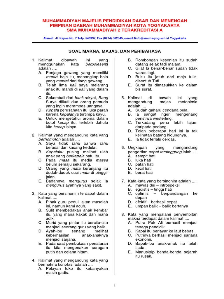 MUHAMMADIYAH MAJELIS PENDIDIKAN DASAR DAN SOAL MAKNA.pdfyang berunsur seperti contoh di atas adalah … Contoh kalimat yang menggunakan kata sinestesia adalah … Kalimat yang mengandung - [PDF Document]