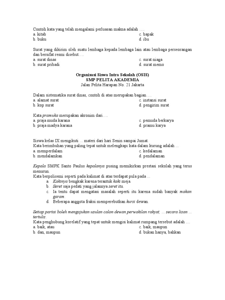 Soal ujian bhs indo