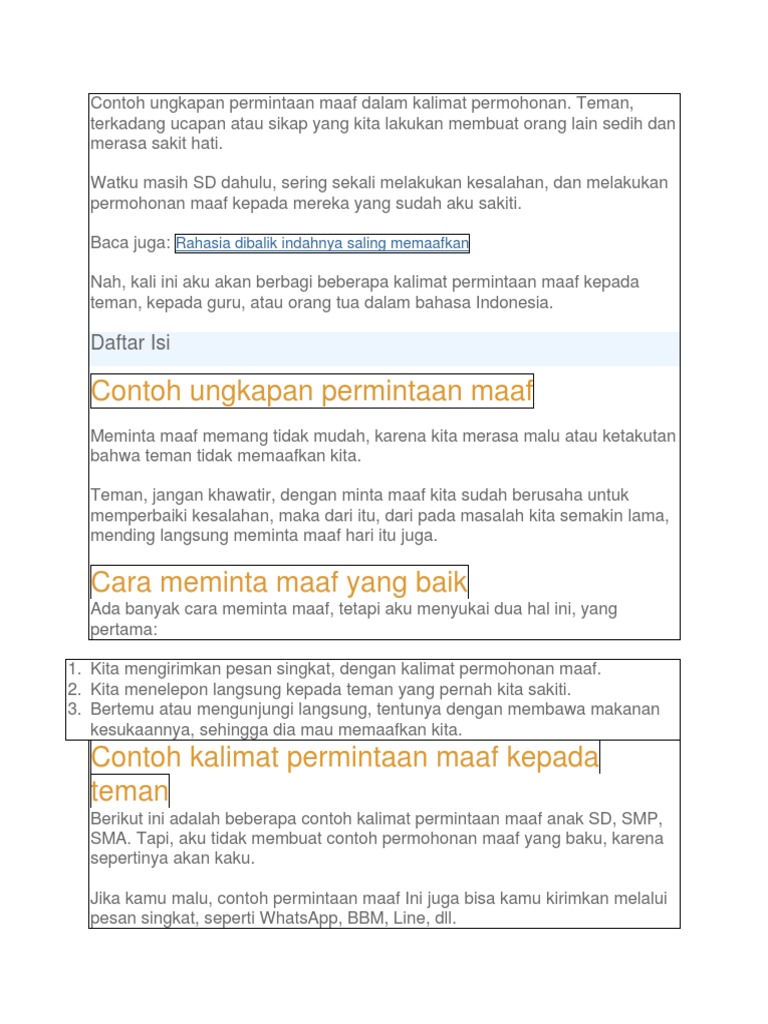 Contoh Ungkapan Permintaan Maaf Dalam Kalimat Permohonan