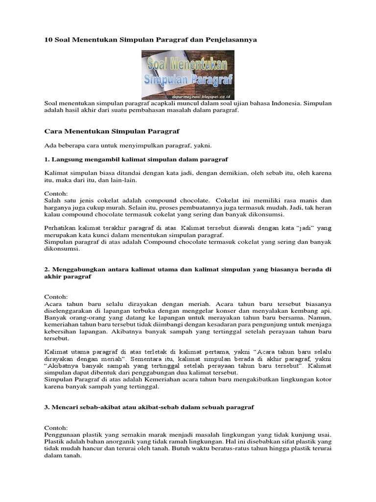 10 Soal Menentukan Simpulan Paragraf Dan Penjelasannya