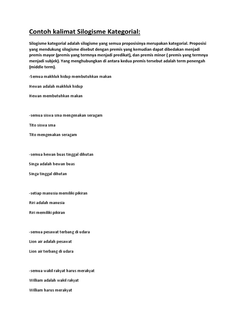 Contoh Kalimat Silogisme Kategorial