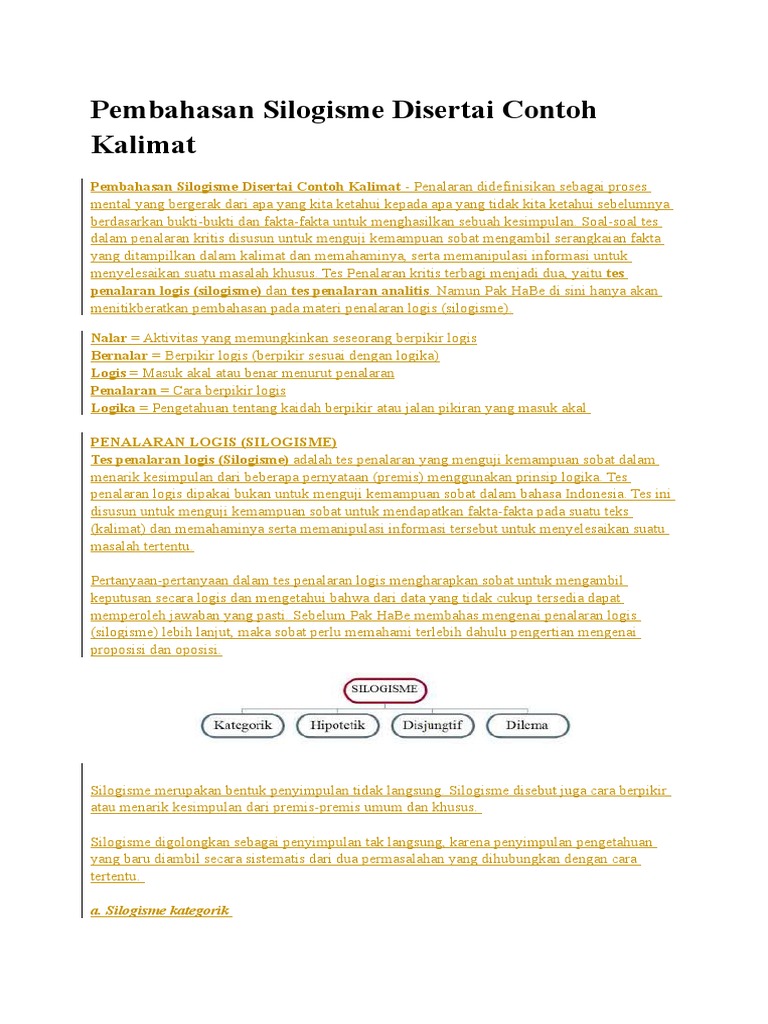 Pembahasan Silogisme Disertai Contoh Kalimat.docx - Pembahasan Silogisme Disertai Contoh Kalimat Pembahasan Silogisme Disertai Contoh Kalimat Penalaran | Course Hero