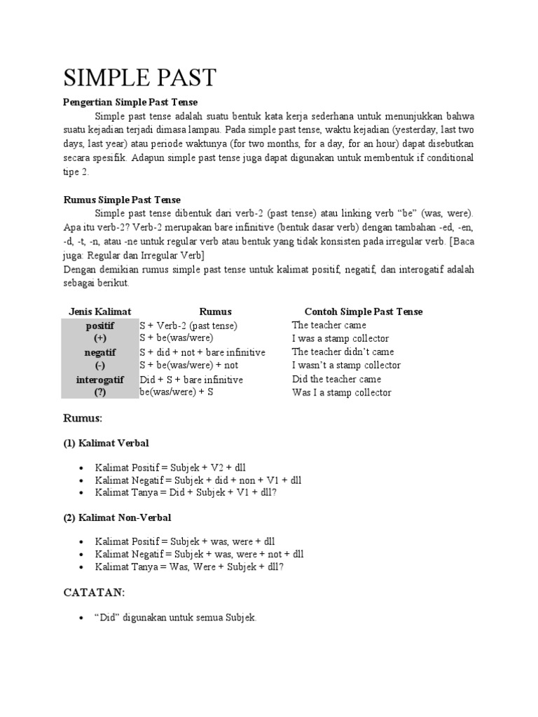 DOC) Rumus kalimat Simple Past Tense | Chelsea Abigail - Academia.edu