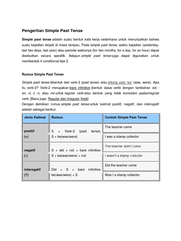 DOC) Rumus kalimat Simple Past Tense | Chelsea Abigail - Academia.edu