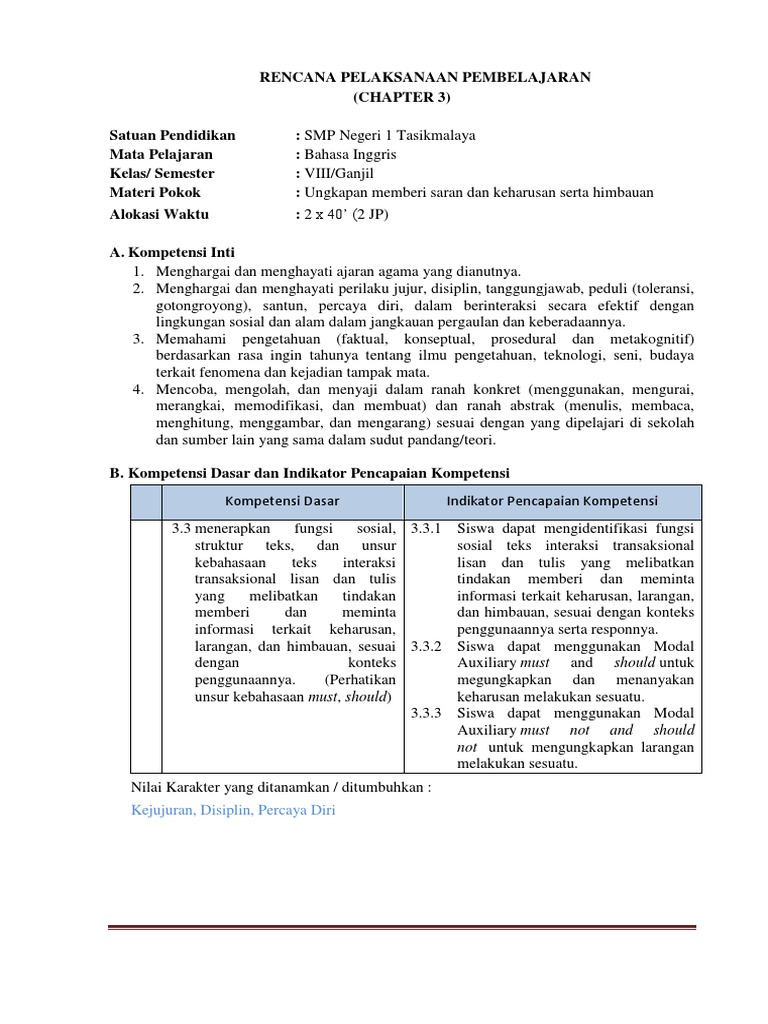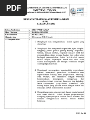 DOC) RENCANA PELAKSANAAN PEMBELAJARAN KELAS XI CHAPTER 1 | Sarti Mulyanto - Academia.edu