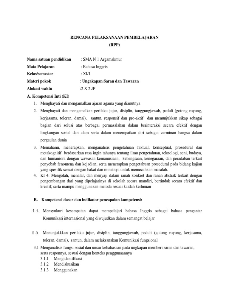 Rpp ungkapan memberikan saran dan tawaran