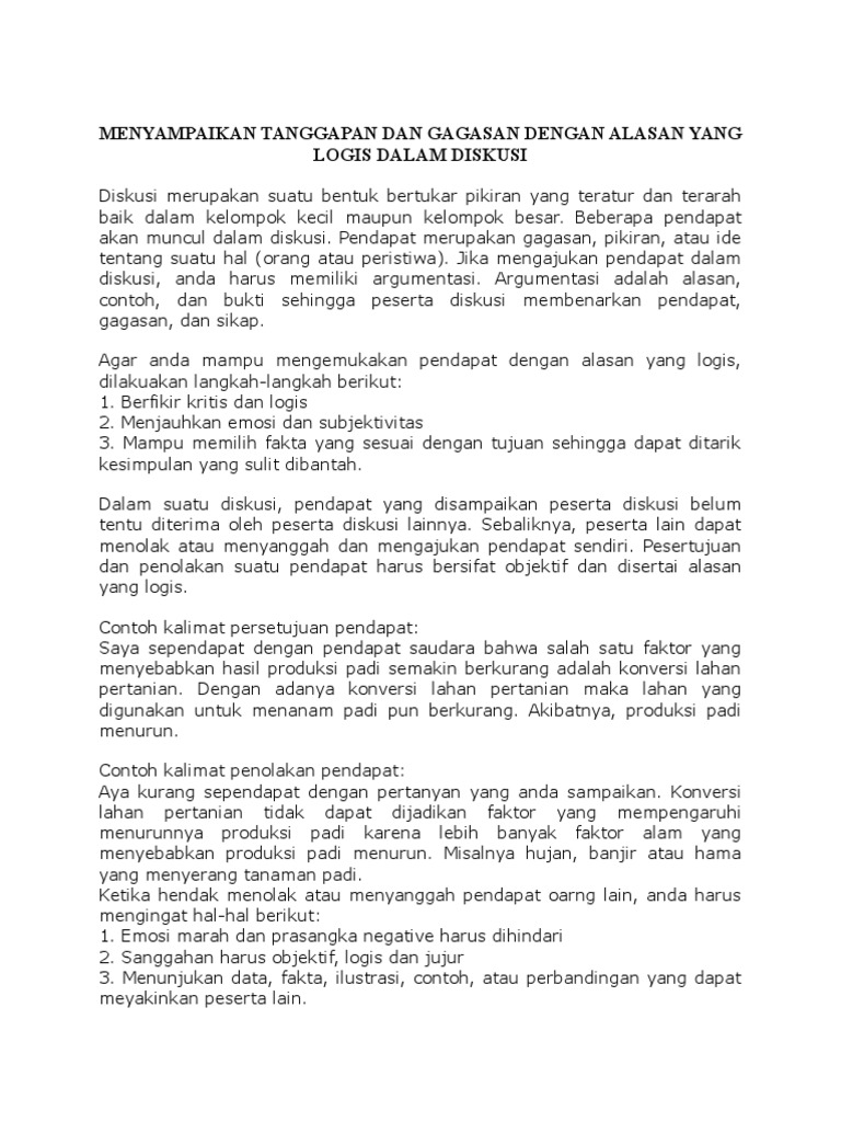 Contoh Cara Menyampaikan Kalimat Persetujuan, Sanggahan dan Penolakan Pendapat dalam Diskusi - Berpendidikan.Com