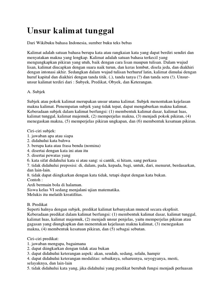 Pengertian Kalimat Tunggal , Ciri-Ciri, Jenis dan Contoh Kalimat Tunggal (Simpleks) Lengkap – Pelajaran Sekolah Online