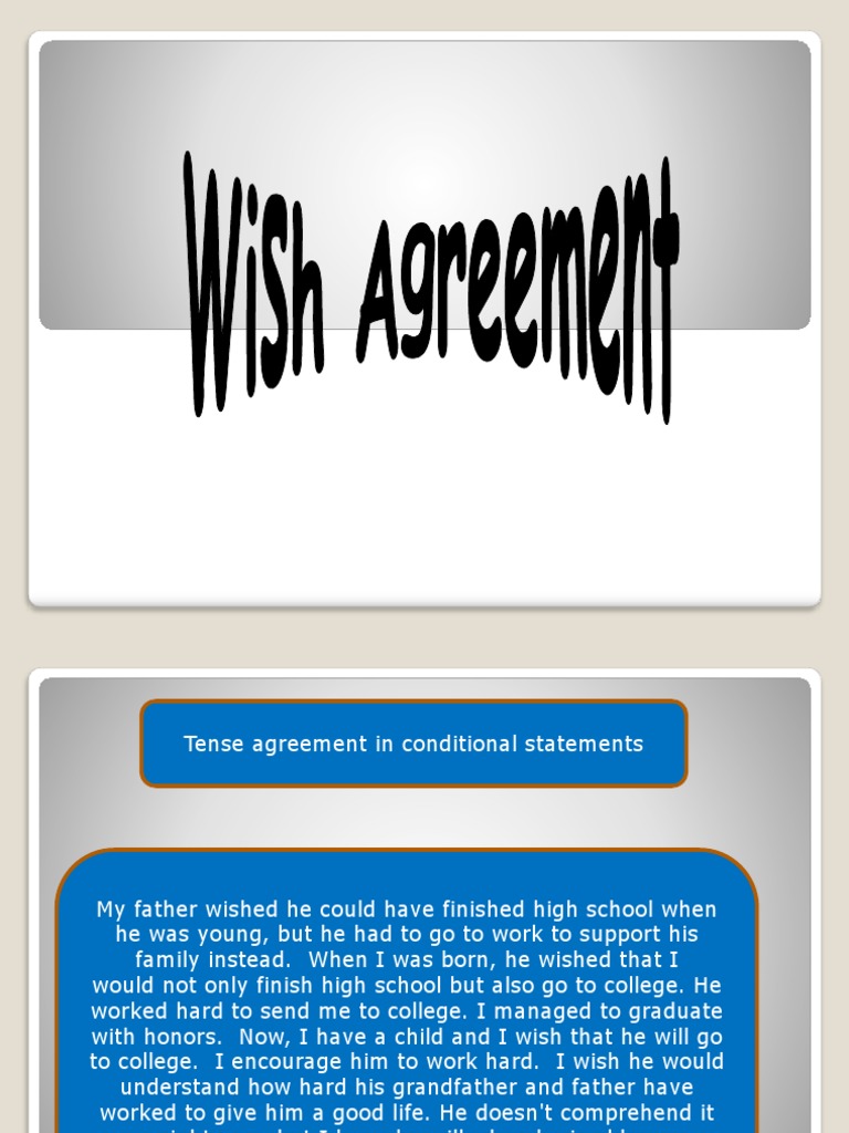 Tense agreement in conditional statements My father wished he could have finished high school when he was young, but he had to go to work to support his. - ppt download