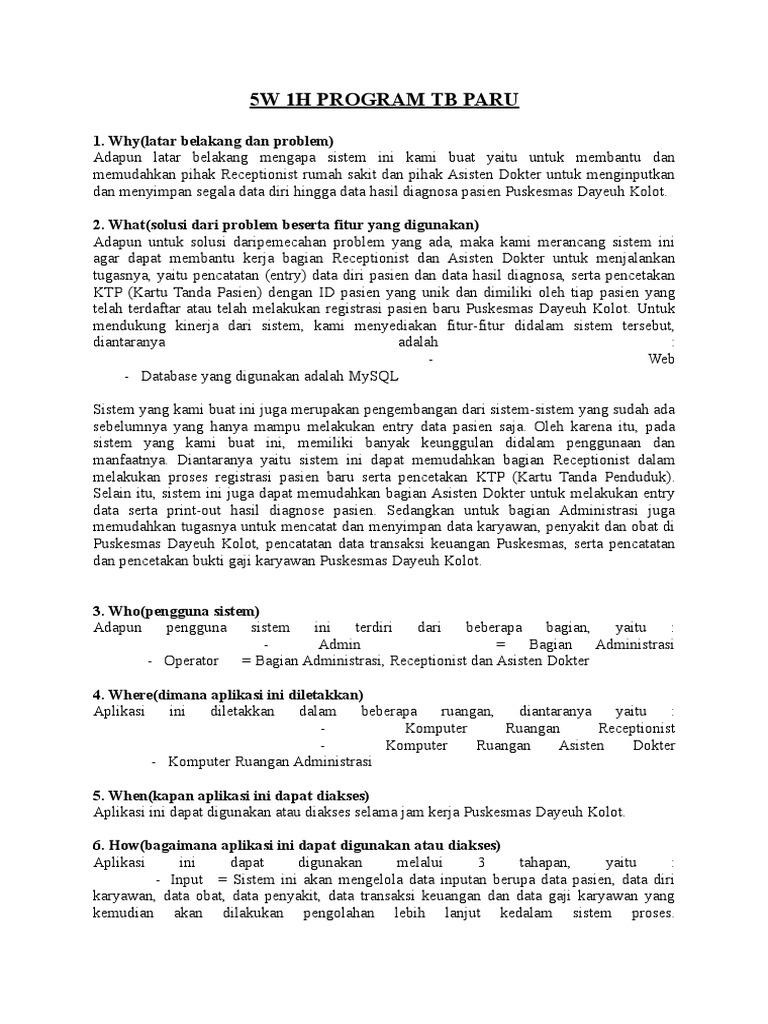 Analisa Masalah dengan Pendekatan 5W 1H - MITRA KESMAS