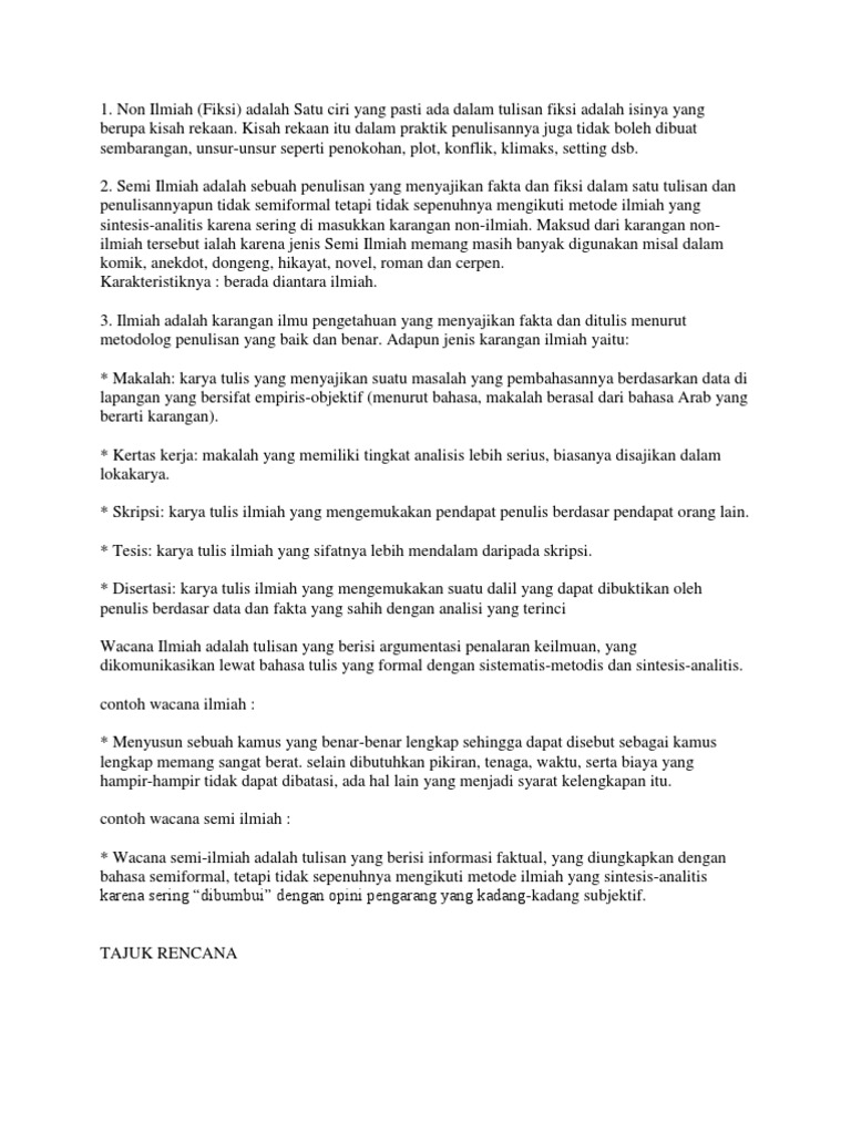 Analisis Karya Ilmiah Semi Ilmiah Dan Non Ilmiah