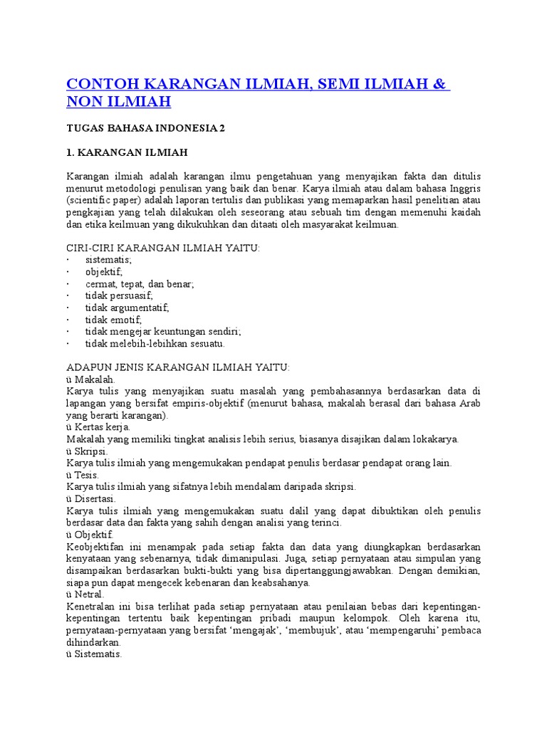 KARANGAN ILMIAH & NON ILMIAH BAHASA INDONESIA 2 FITRI DWI LESTARI - PDF Download Gratis