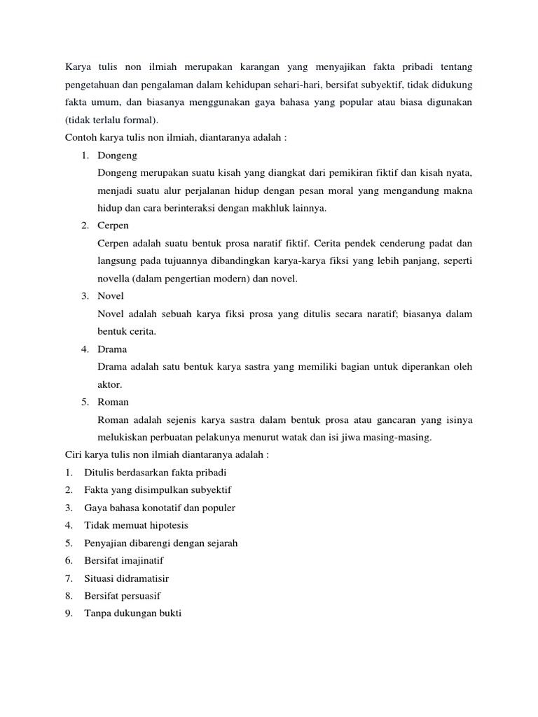Contoh Karya Non Ilmiah - Pengertian dan Contoh