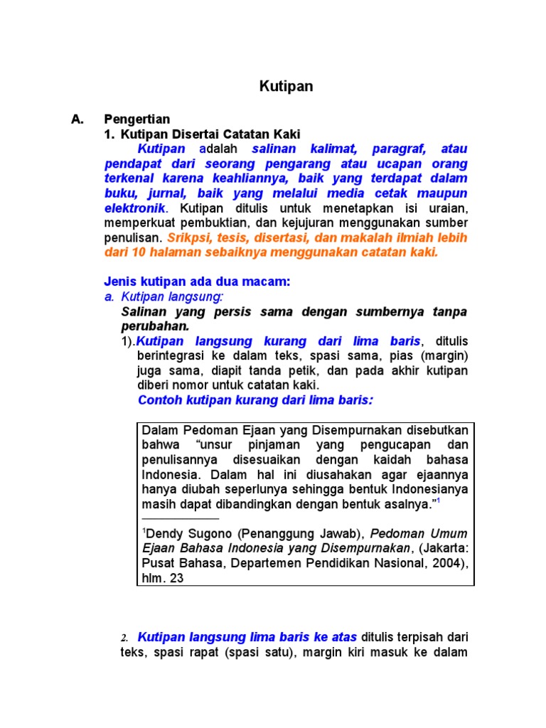 DOC) Makalah Bahasa Indonesia : Kutipan, Catatan Kaki, dan Daftar Pustaka | Oyii AC - Academia.edu