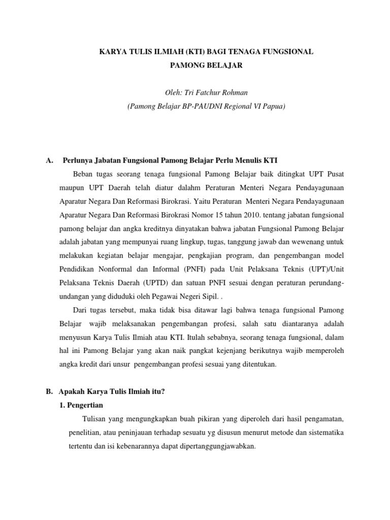 Karya Tulis Ilmiah Bagi Pamong Belajar