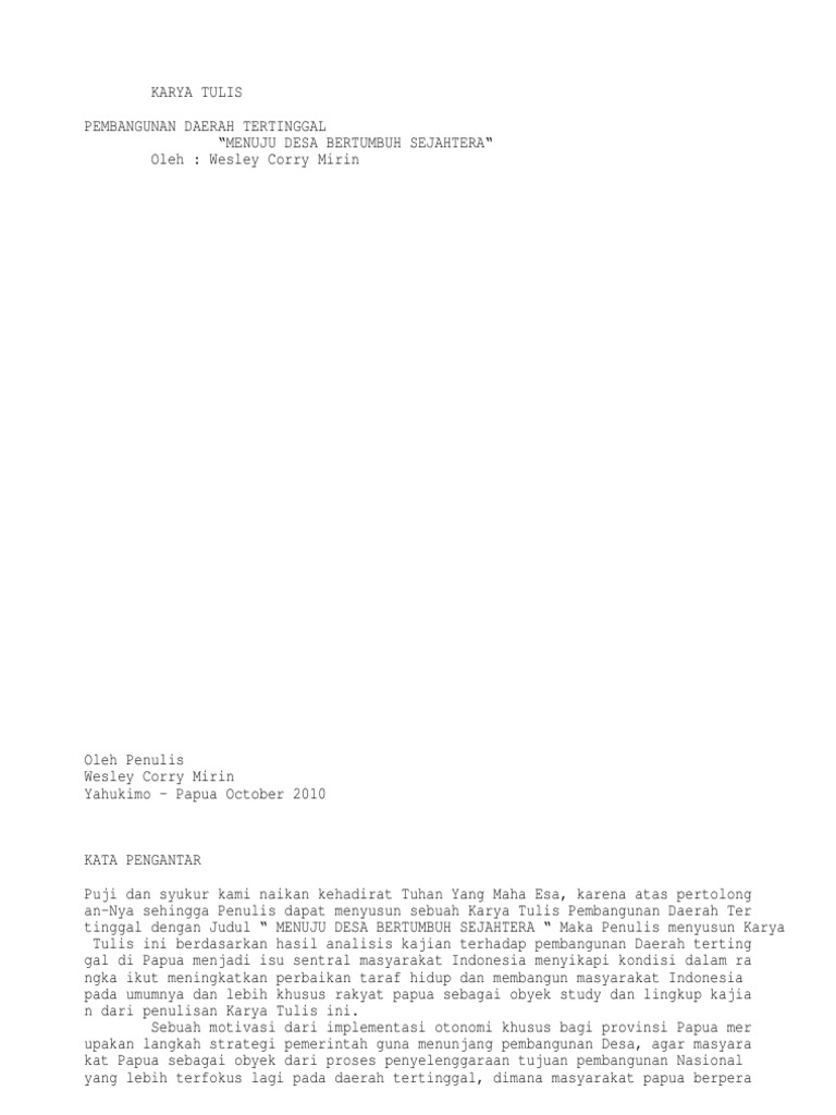 KARYA TULIS ILMIAH PEMBANGUNAN DAERAH TERTINGGAL