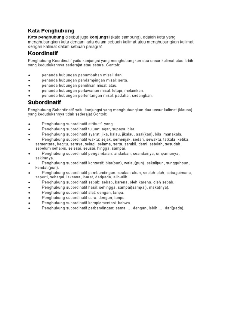 Penggunaan Konjungsi dalam Kalimat. Anggota konjungsi ini adalah (karena, sebab, gara-gara, dan lantaran) - PDF Free Download