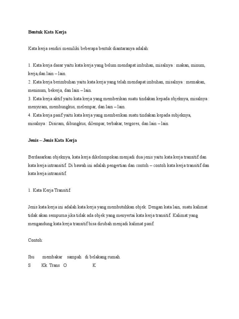Contoh Kata Kerja - Kata Kerja Berdasarkan Bentuk & Berdasarkan Jenis