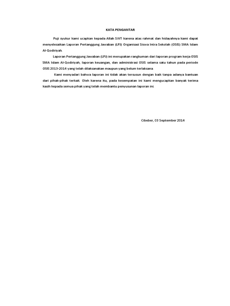 Contoh Laporan Pertanggung Jawaban OSIS Lengkap … | Pelajaran Sekolah | Bank Soal