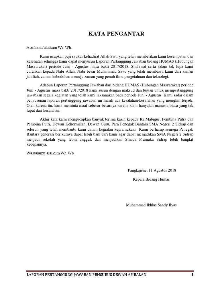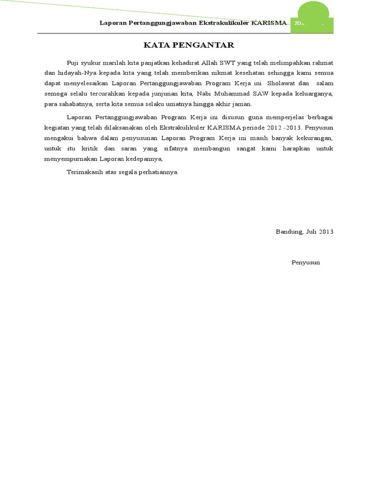 Contoh Kata Pengantar Laporan Pertanggungjawaban