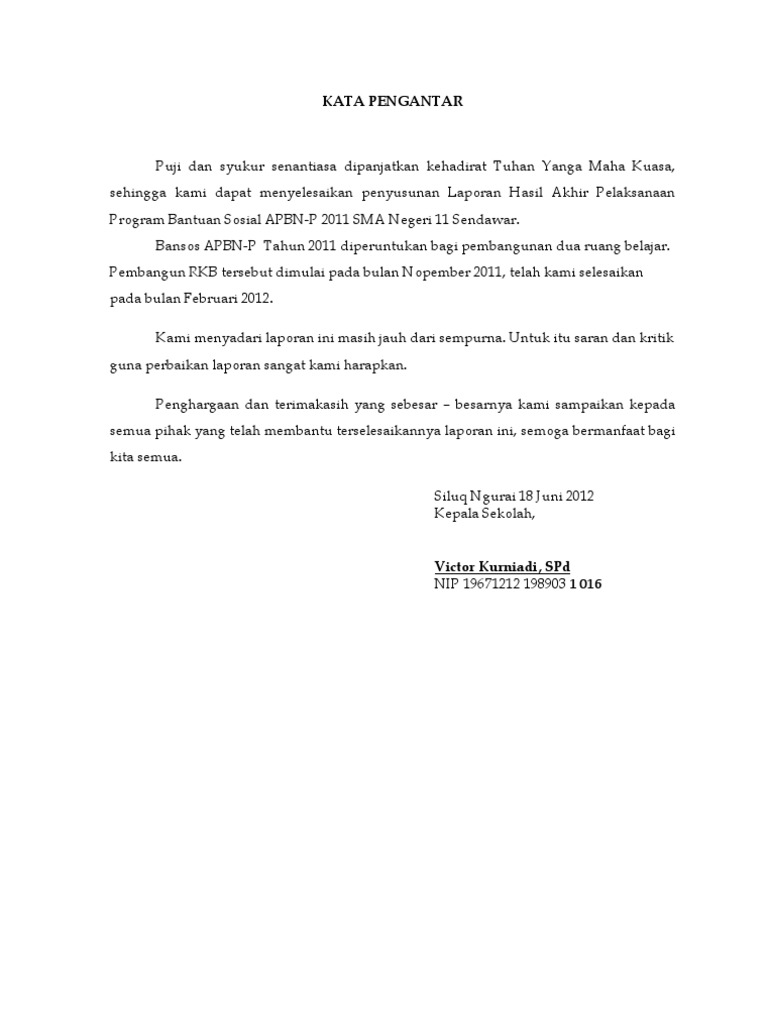 Contoh Kata Pengantar Laporan Kegiatan | contoh soal dan contoh pidato lengkap