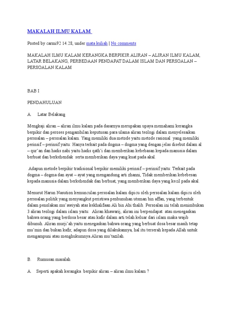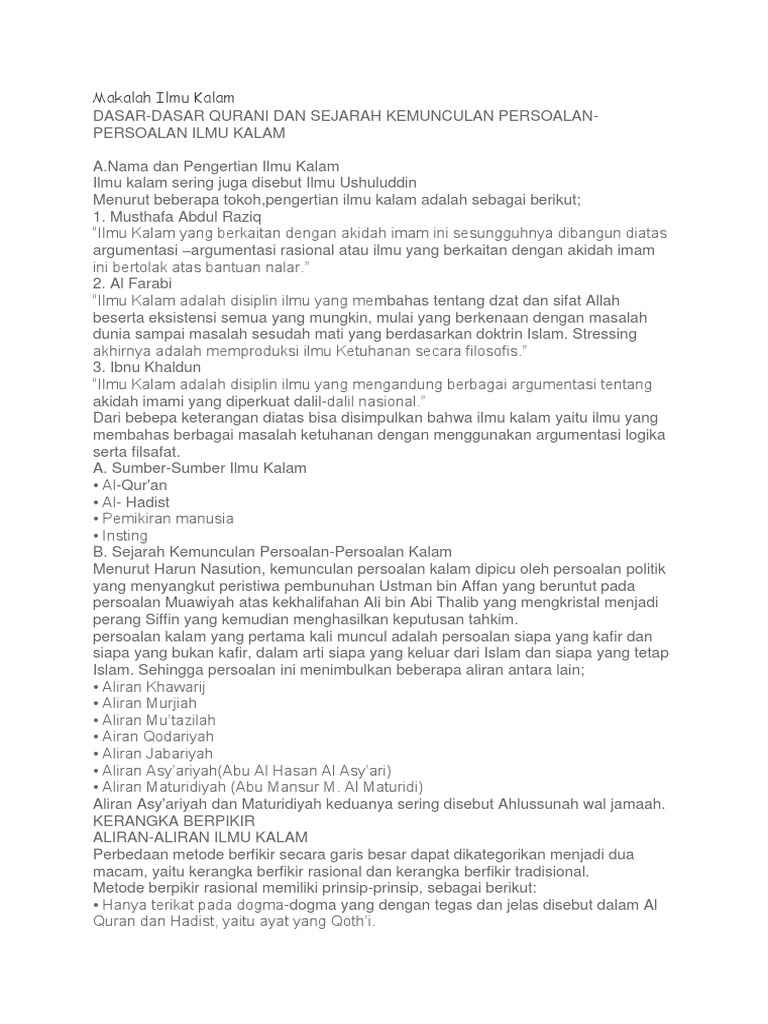 DOC) MAkalah ilmu kalam.docx | Fatahuddin Fatahuddin - Academia.edu