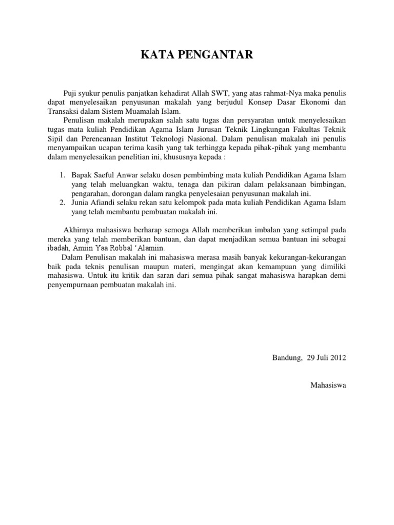 Kata Pengantar Makalah Agama Islam - Contoh Makalah
