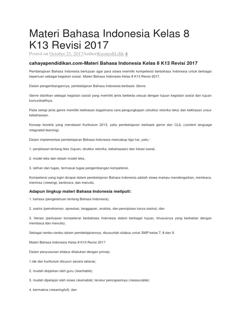 Ringkasan Bahasa Indonesia Kelas 9 K13 Semester 1