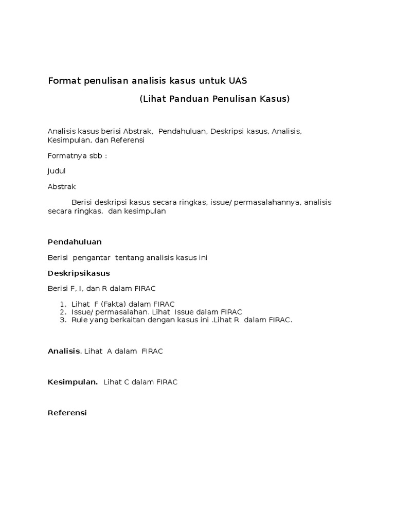 Format Penulisan Analisis Kasus