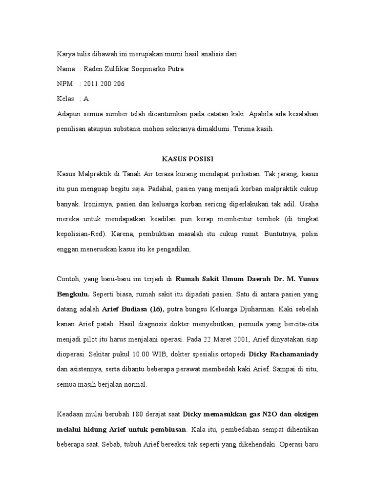 Makalah Analisis Kasus Malpraktik Rumah Sakit Umum M. Yunus Bengkulu
