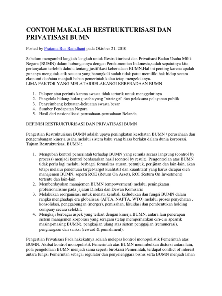 Contoh Makalah Restrukturisasi Dan Privatisasi