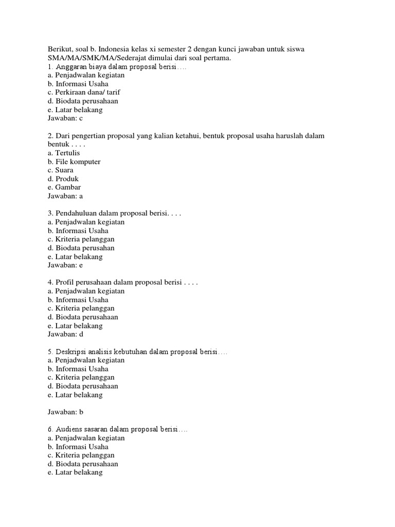 Soal Bahasa Indonesia Kelas 11 Lengkap Dengan Kunci Jawaban
