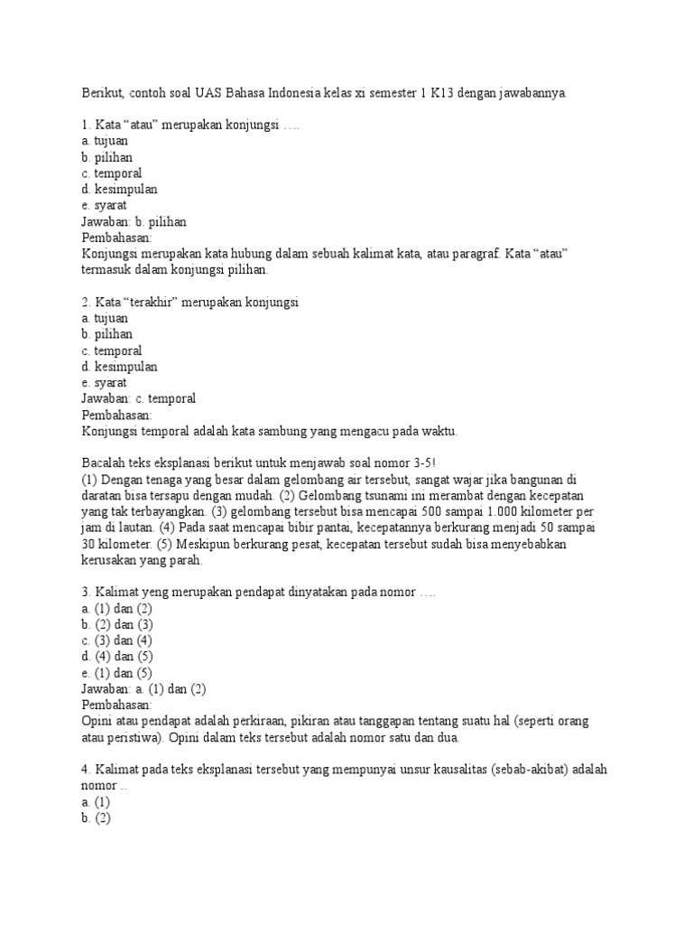 50+ Contoh Soal UTS Bahasa Indonesia Kelas 11 SEM 1 (Jawaban & Pembahasan)