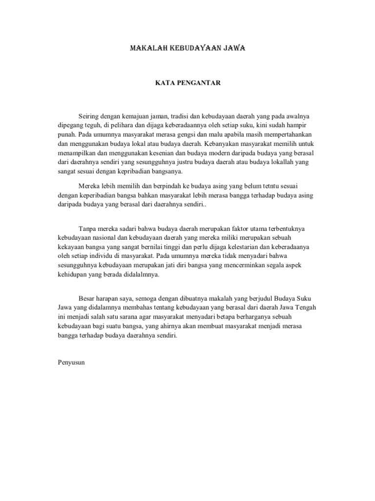 Contoh Kata Pengantar Makalah Bahasa Jawa