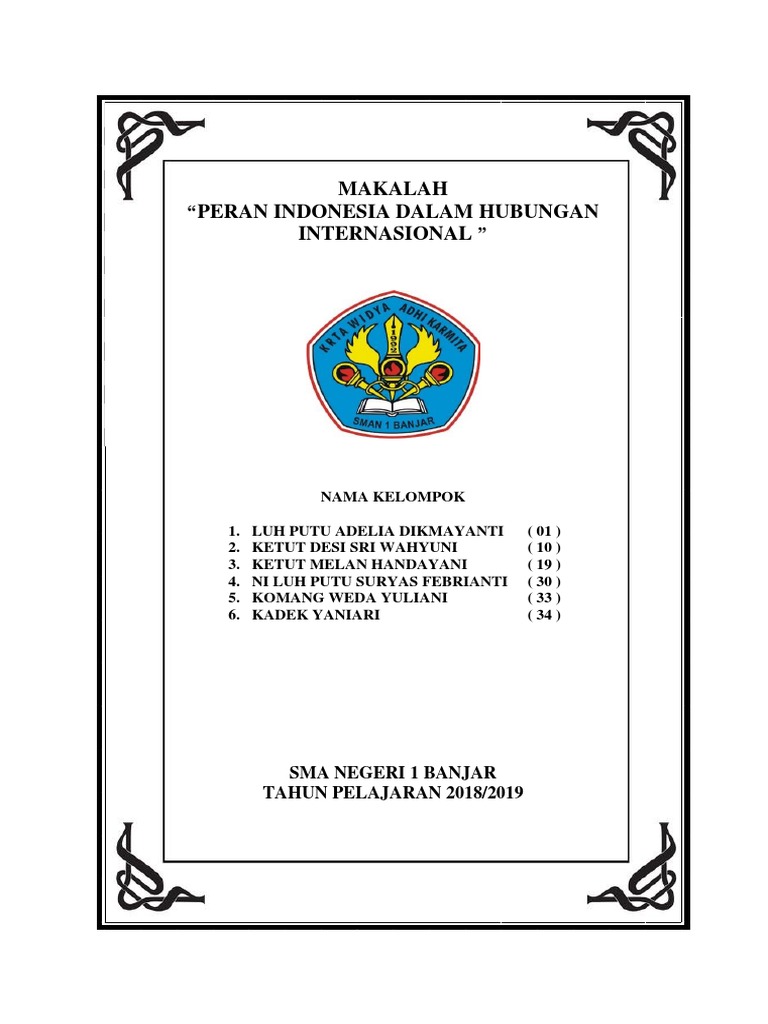 Makalah “Peran Indonesia Dalam Hubungan Internasional ”: Sma Negeri 1 Banjar TAHUN PELAJARAN 2018/2019