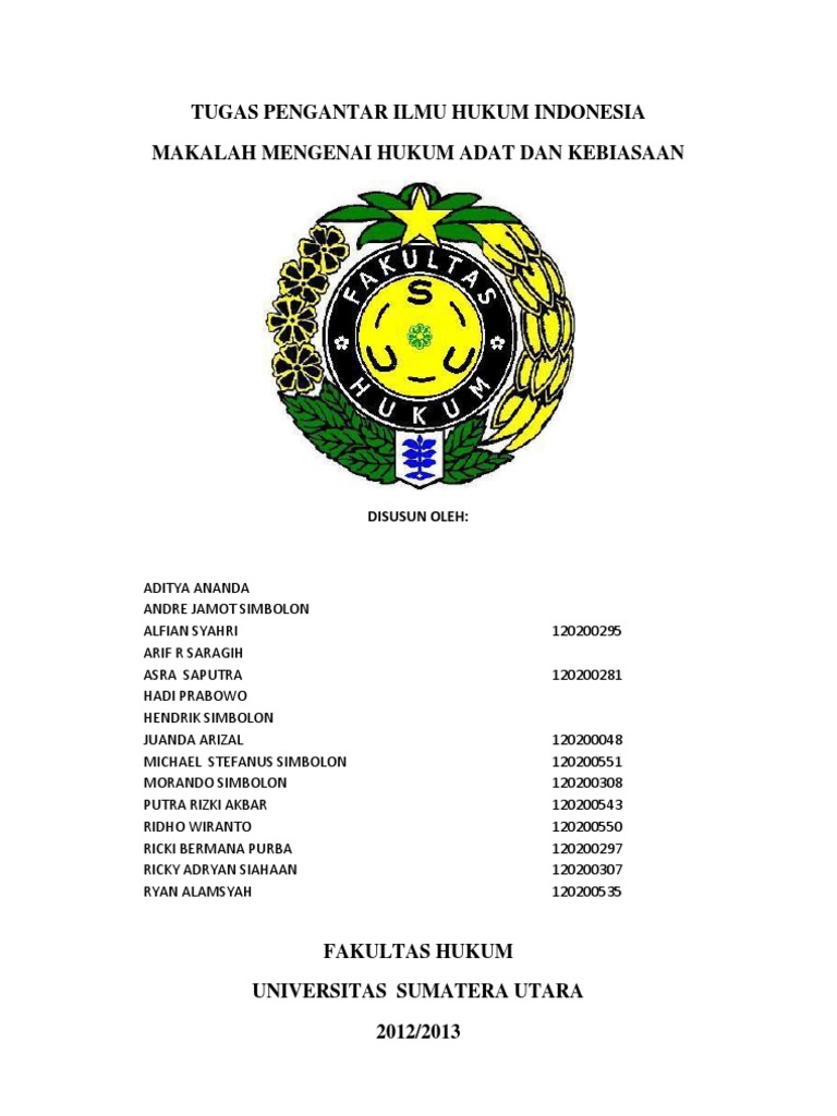 Tugas Pengantar Ilmu Hukum Indonesia Group Hukum Adat Dan Kebiaaan