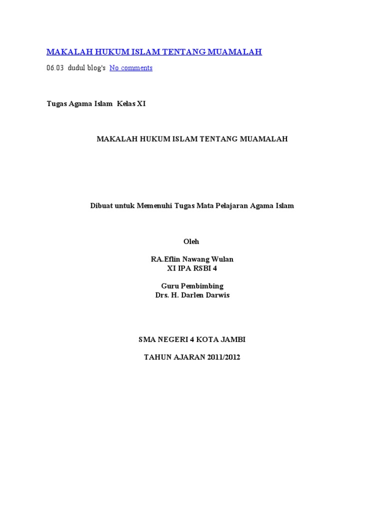 DOC) Makalah agama tentang muamalah | Atik Rara Septianti Pratiwi - Academia.edu