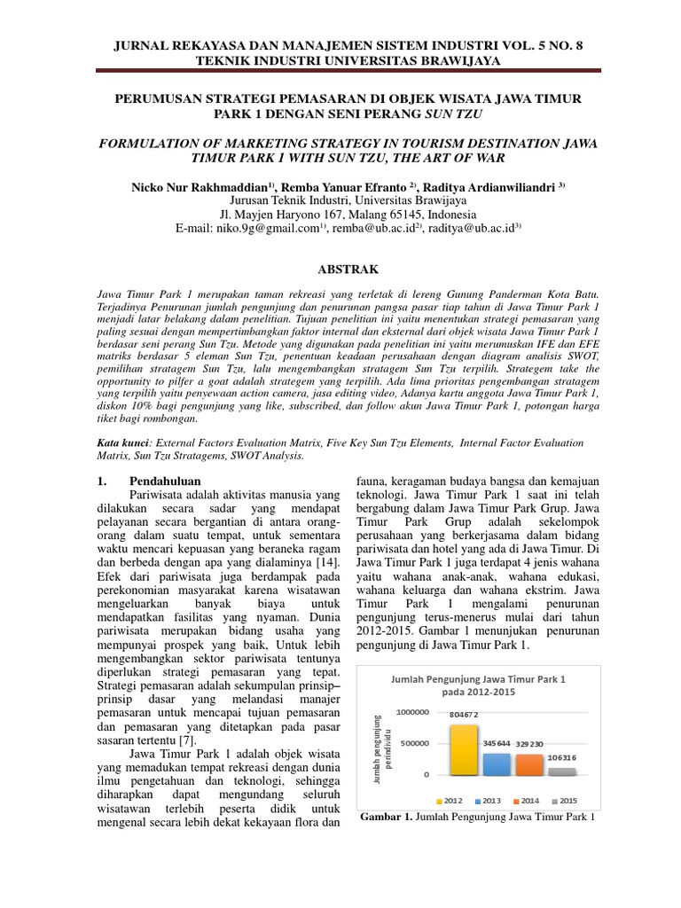 JURNALPERUMUSAN STRATEGI PEMASARAN DI OBJEK WISATA JAWA TIMUR PARK 1 DENGAN SENI PERANG SUN TZU FORMULATION OF MARKETING STRATEGY IN TOURISM DESTINATION JAWA TIMUR PARK 1 WITH SUN TZU, THE ART OF WAR