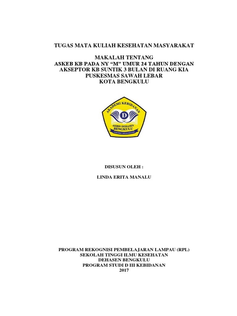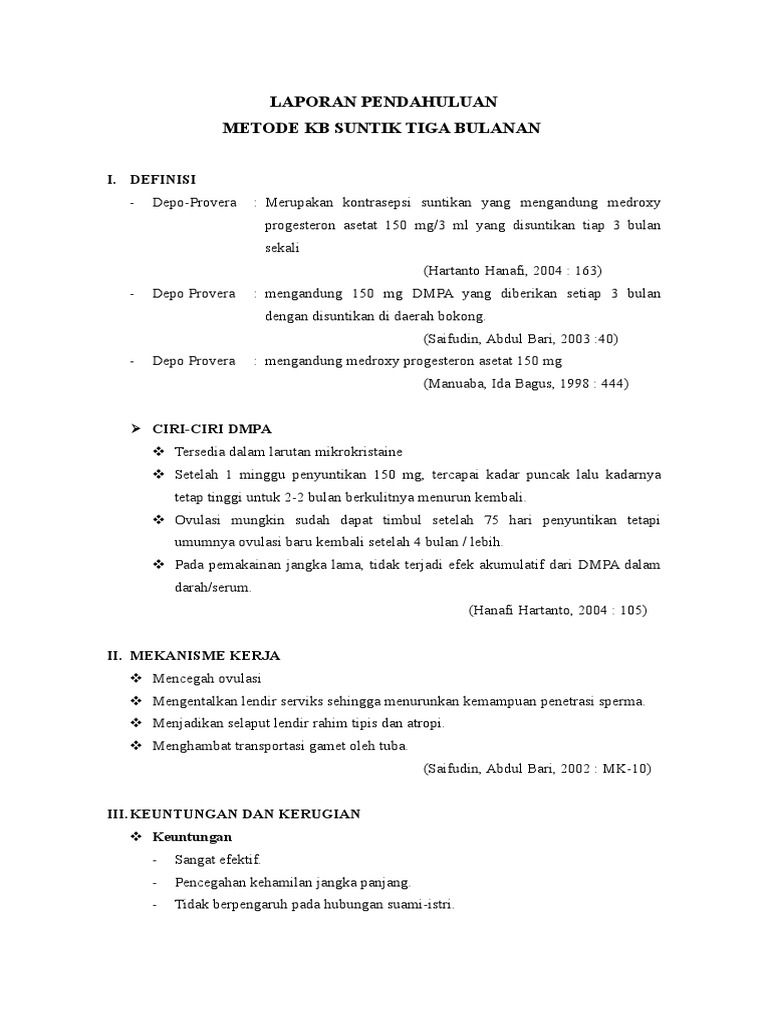 DOC) ASUHAN KEBIDANAN PADA AKSEPTOR KB SUNTIK 3 BULAN | Mia Natalia - Academia.edu