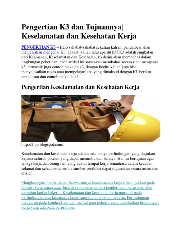Pengertian K3 dan Tujuannya| Keselamatan dan Kesehatan Kerja