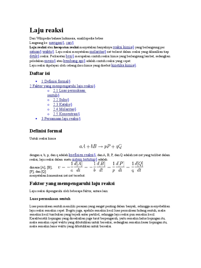 DOC) MAKALAH KIMIA FAKTOR2 YANG MEMPENGARUHI LAJU REAKSI | ami aca - Academia.edu