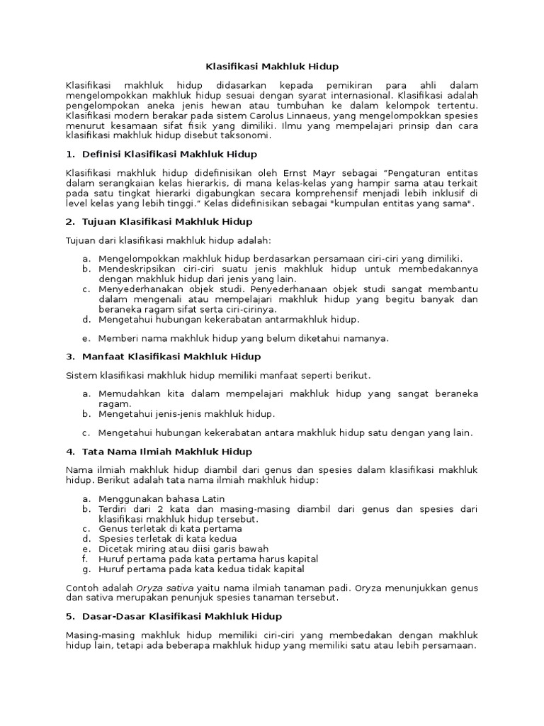 Makalah Klasifikasi Makhluk Hidup | Berita Viral