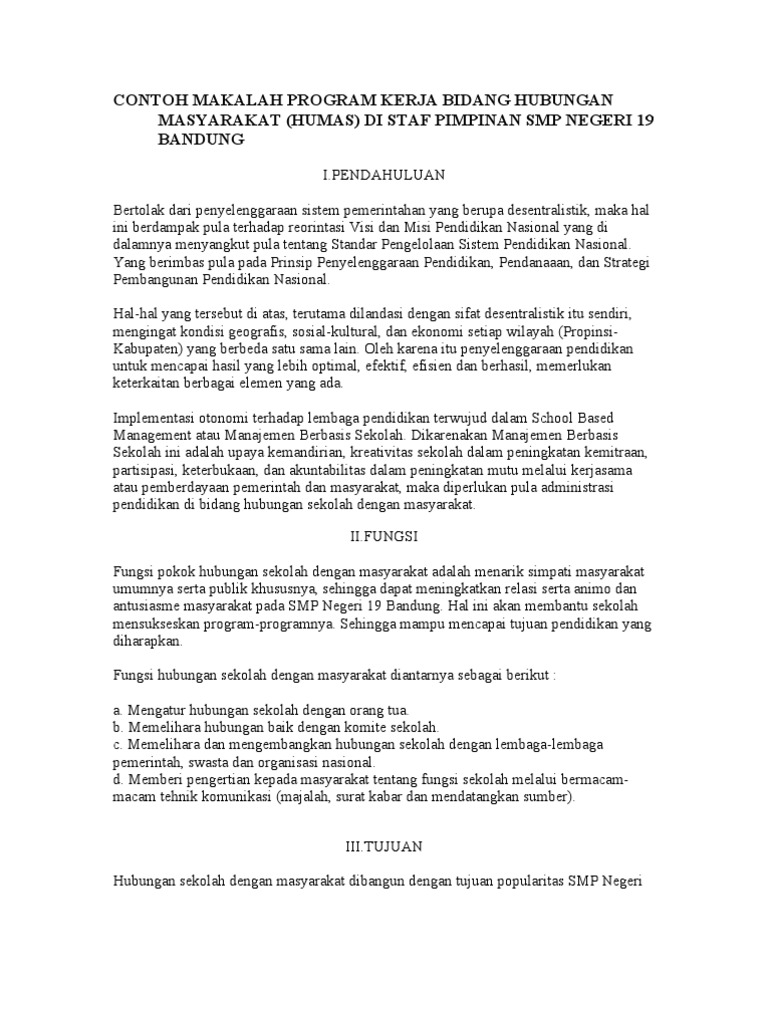 Contoh Makalah Program Kerja Bidang Hubungan Masyaraka1