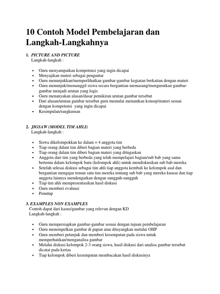 10 Contoh Model Pembelajaran Dan Langkah