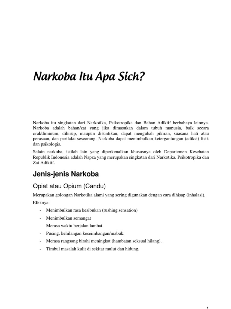 DOC) NARKOBA (Narkotika, Psikotropika, dan Zat Adiktif) | Adinda K Aprilliani - Academia.edu