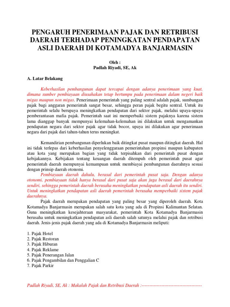 Optimalisasi Pajak Retribusi Daerah dalam Rangka Upaya Peningkatan Pendapatan Asli Daerah (PAD | Wahyu Budianty - Academia.edu