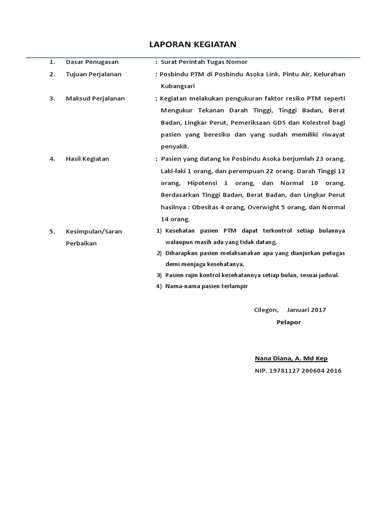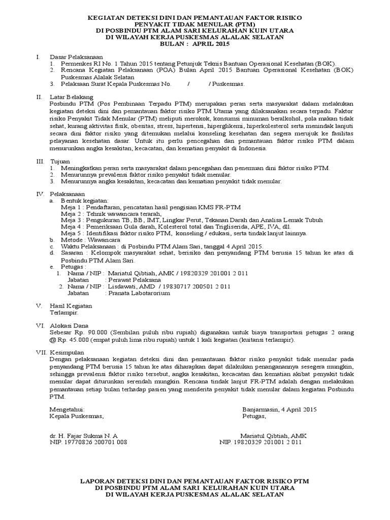 Laporan Posbindu Ptm, New