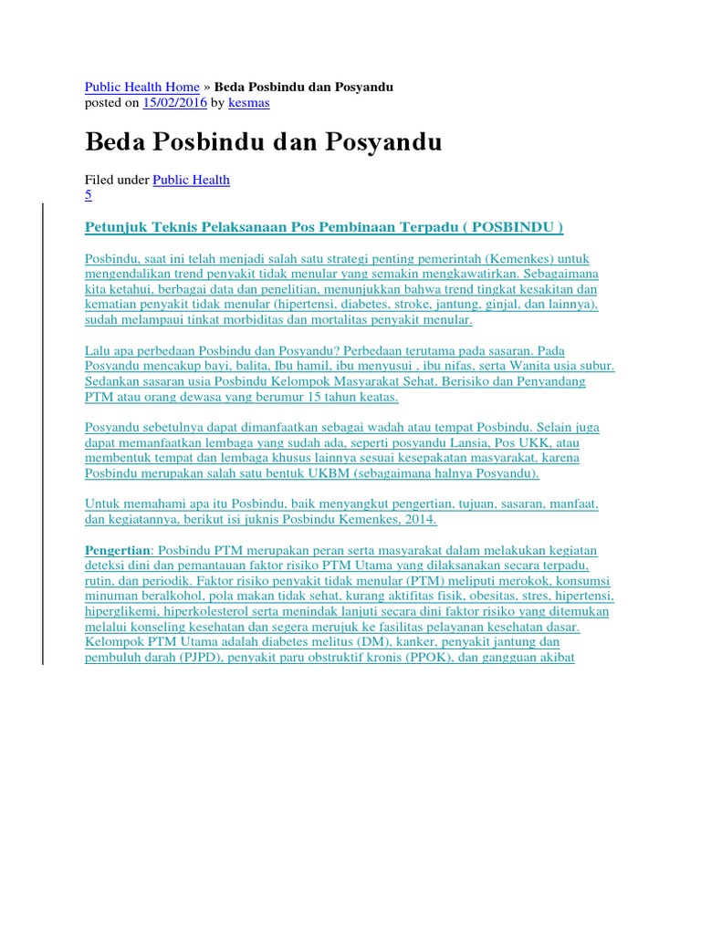Juknis Posbindu PTM (Pos Pembinaan Terpadu Penyakit Tidak Menular) ~ Health and Management