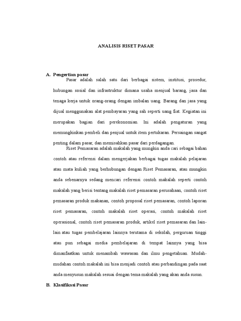 Contoh Makalah Riset Pasar